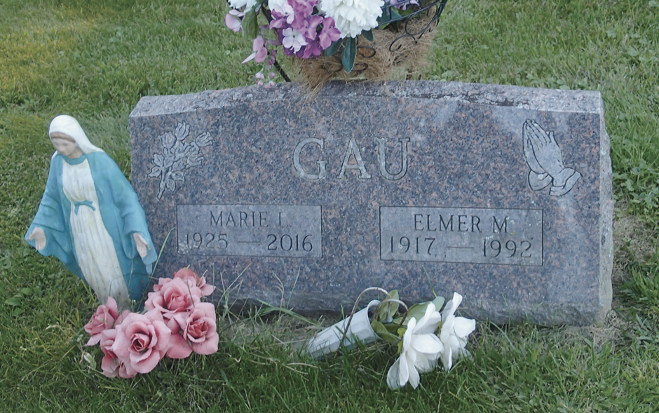 On Aug. 13, 2016, at age 91, my mother-in-law, Marie Gau, died two weeks after her birthday (born July 31, 1925). She was buried next to her husband, Elmer, of 45 years. Elmer was born July 10, 1917, and died June 26, 1992-two weeks short of his 75th birthday. They both lived longer than the average lifespan of those buried in the cemetery.