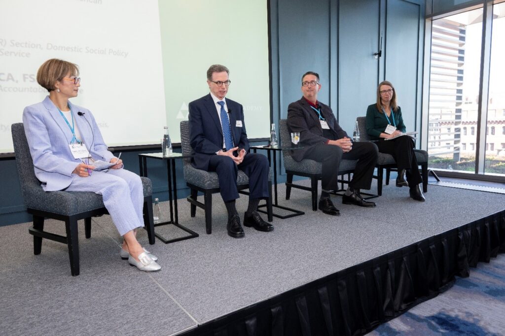 Over the course of several panels, Academy volunteer leaders led conversations with representatives from several key Academy stakeholder groups, asking them about their priorities for 2026 and how the Academy can be helpful. Although the panels were not coordinated in advance, a common theme quickly emerged: Actuaries and the Academy are highly valued, particularly for decision-makers and advocates in Washington, D.C. Panelists repeatedly emphasized that the balanced, objective, and nonpartisan expertise the Academy and its volunteer actuaries bring to the policy table every day is deeply valuable and more impactful than actuaries themselves may realize.