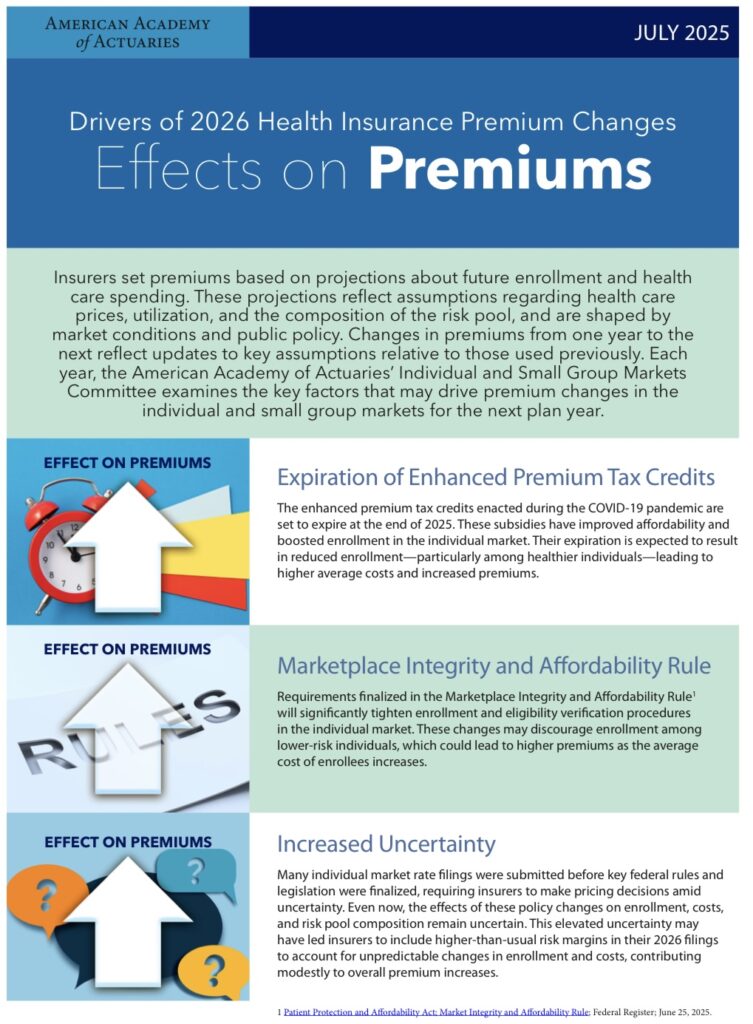 • An issue brief, Drivers of 2026 Premium Changes, and accompanying infographic.