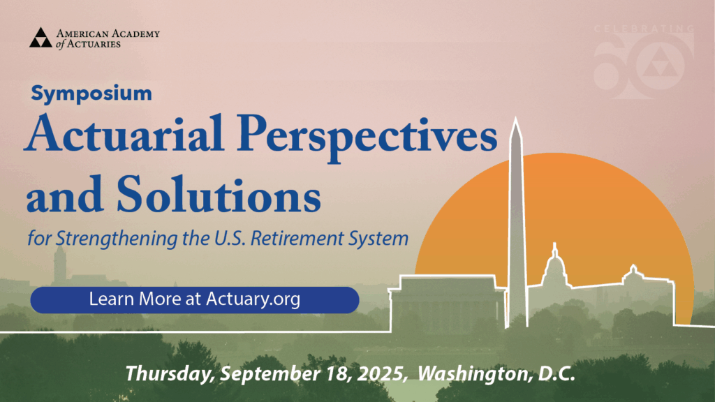 Coming next month-the Retirement Practice Council’s Actuarial Perspectives and Solutions for Strengthening the U.S. Retirement System symposium will be held Sept. 18 in Washington, D.C. Following last year’s successful “ERISA at 50” retirement symposium, the event will bring together federal policymakers, retirement experts, and actuaries to discuss and share actionable solutions aimed at strengthening the U.S. retirement system and improving retirement outcomes for Americans, including examining Social Security in its 90th year. U.S. Comptroller General Gene Dodaro will give the opening keynote address. Register today.