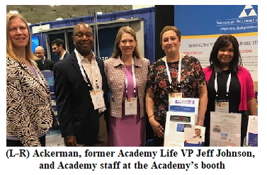 Academy President Steve Alpert, President-Elect Shawna Ackerman, and Executive Director Mary Downs attended the Society of Actuaries’ (SOA) Annual Meeting in Nashville this week, where they congratulated incoming and outgoing SOA leadership. There were several other past Academy presidents and leadership in attendance as well, and the Academy’s exhibit booth had steady visitors.